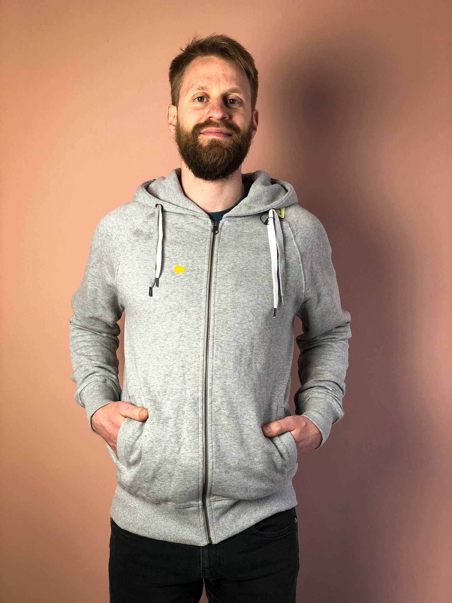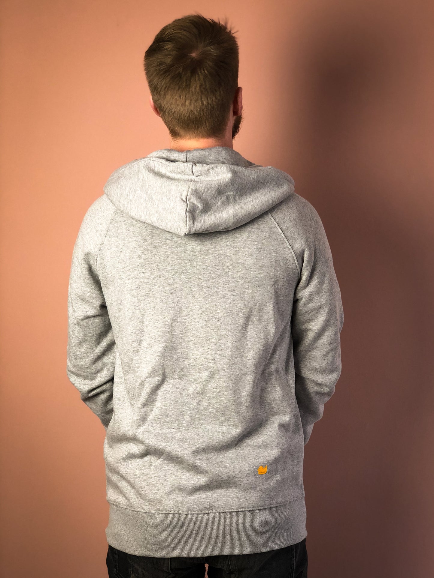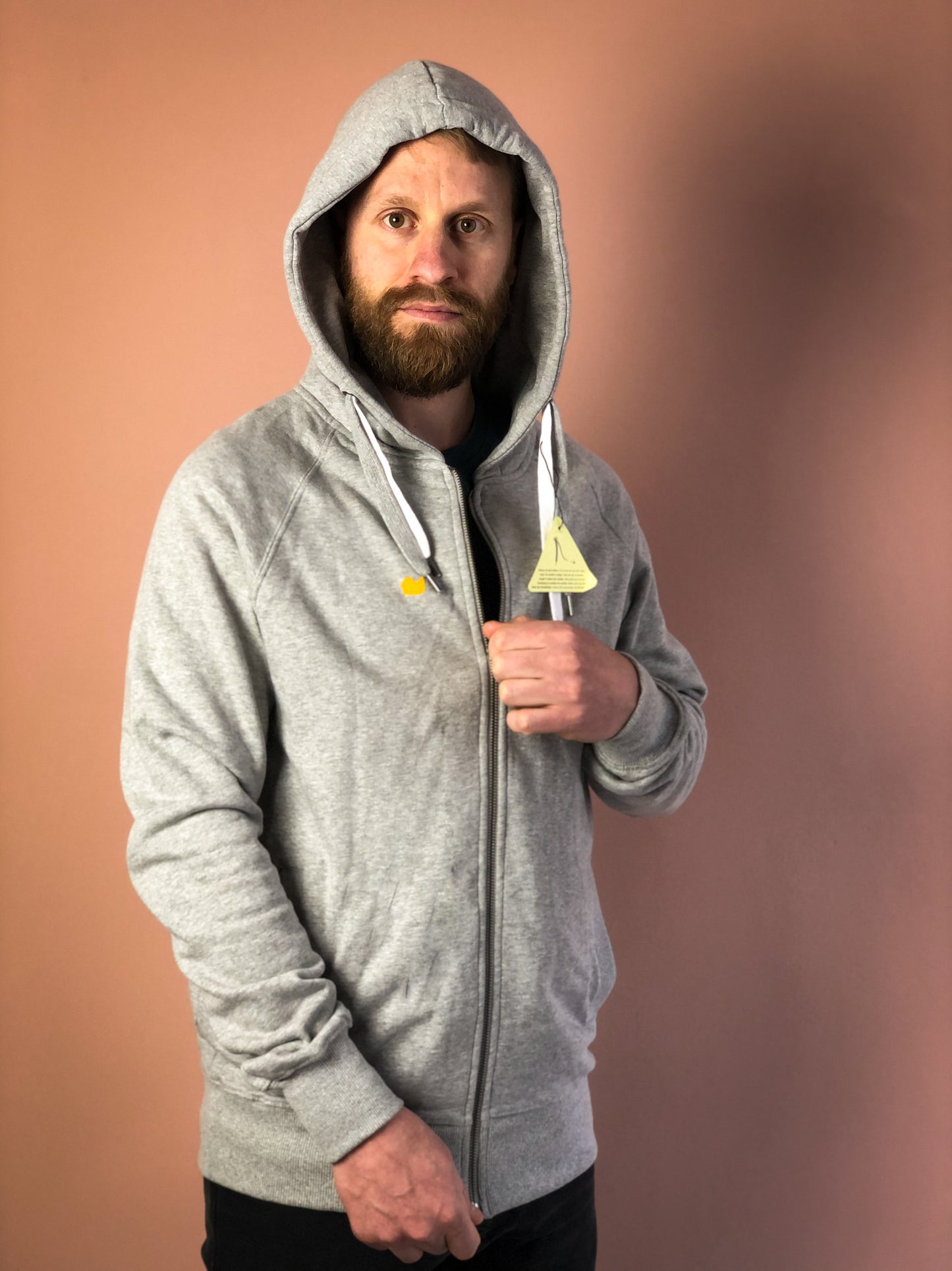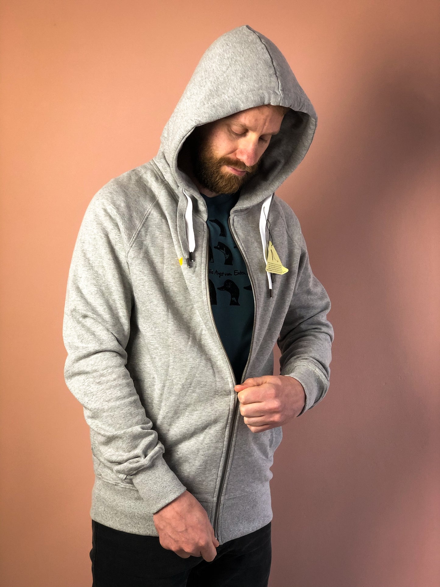 Sweatjacke mit Kaputze für Männer oder Frauen aus Biobaumwolle mit 2 verschieden farbigen Bändchen (behalte entweder beide drin oder entscheide dich für eines der Beiden)
