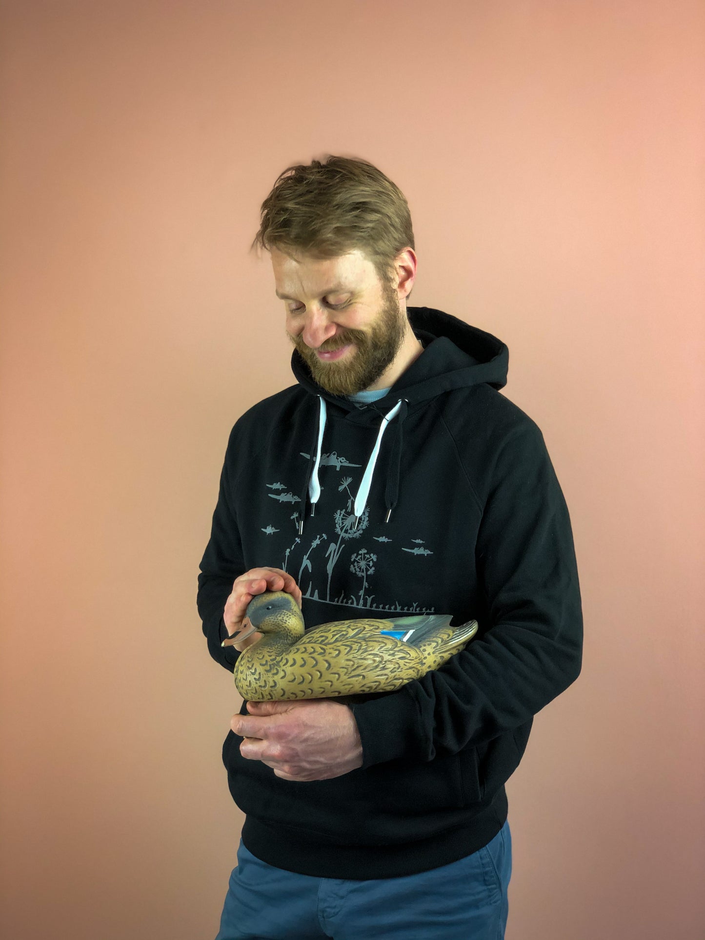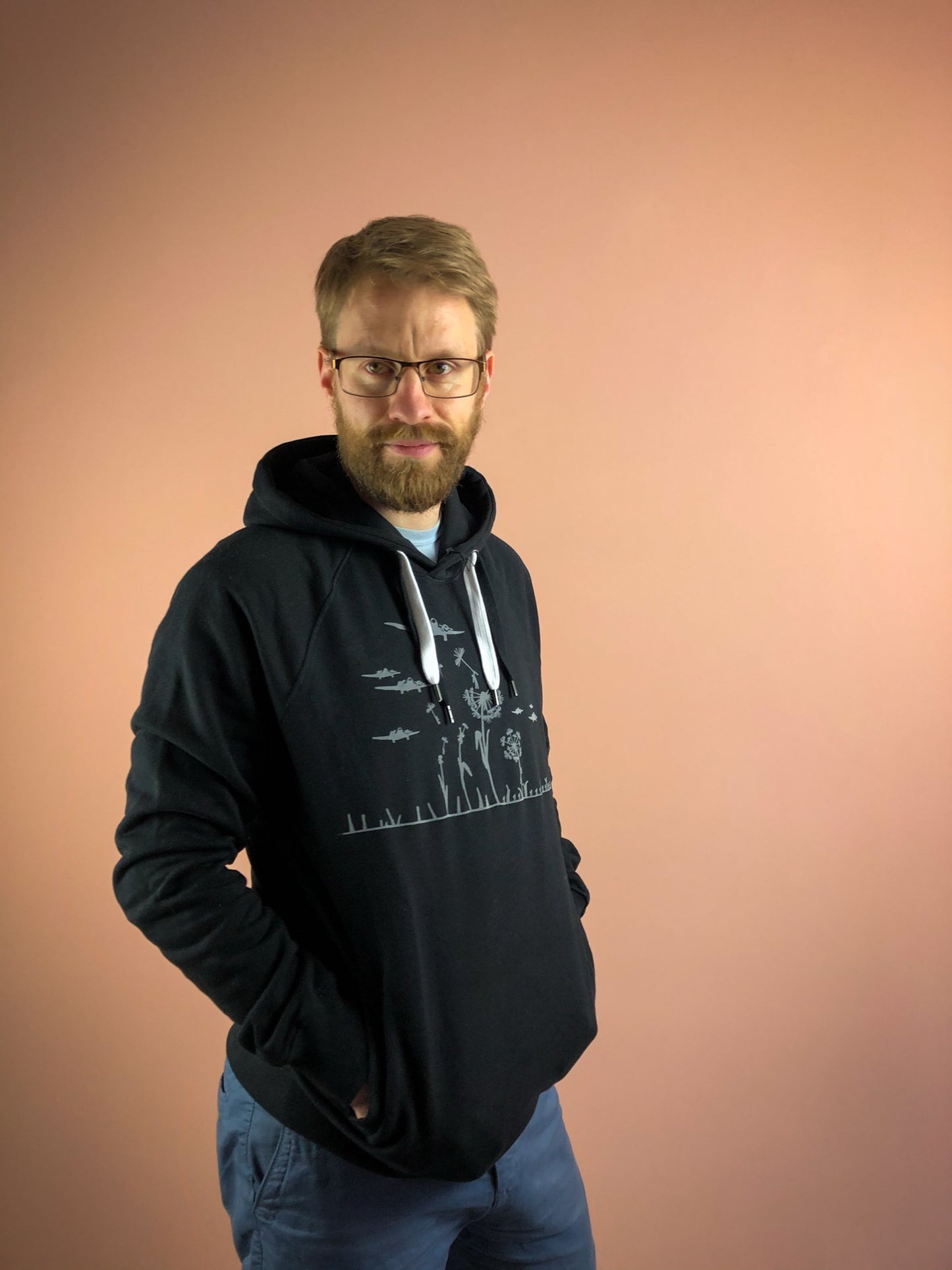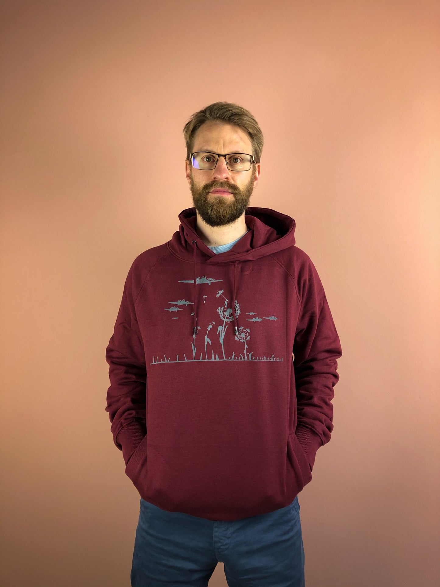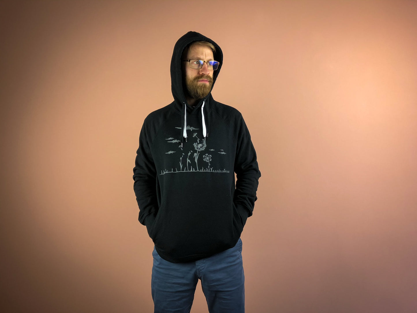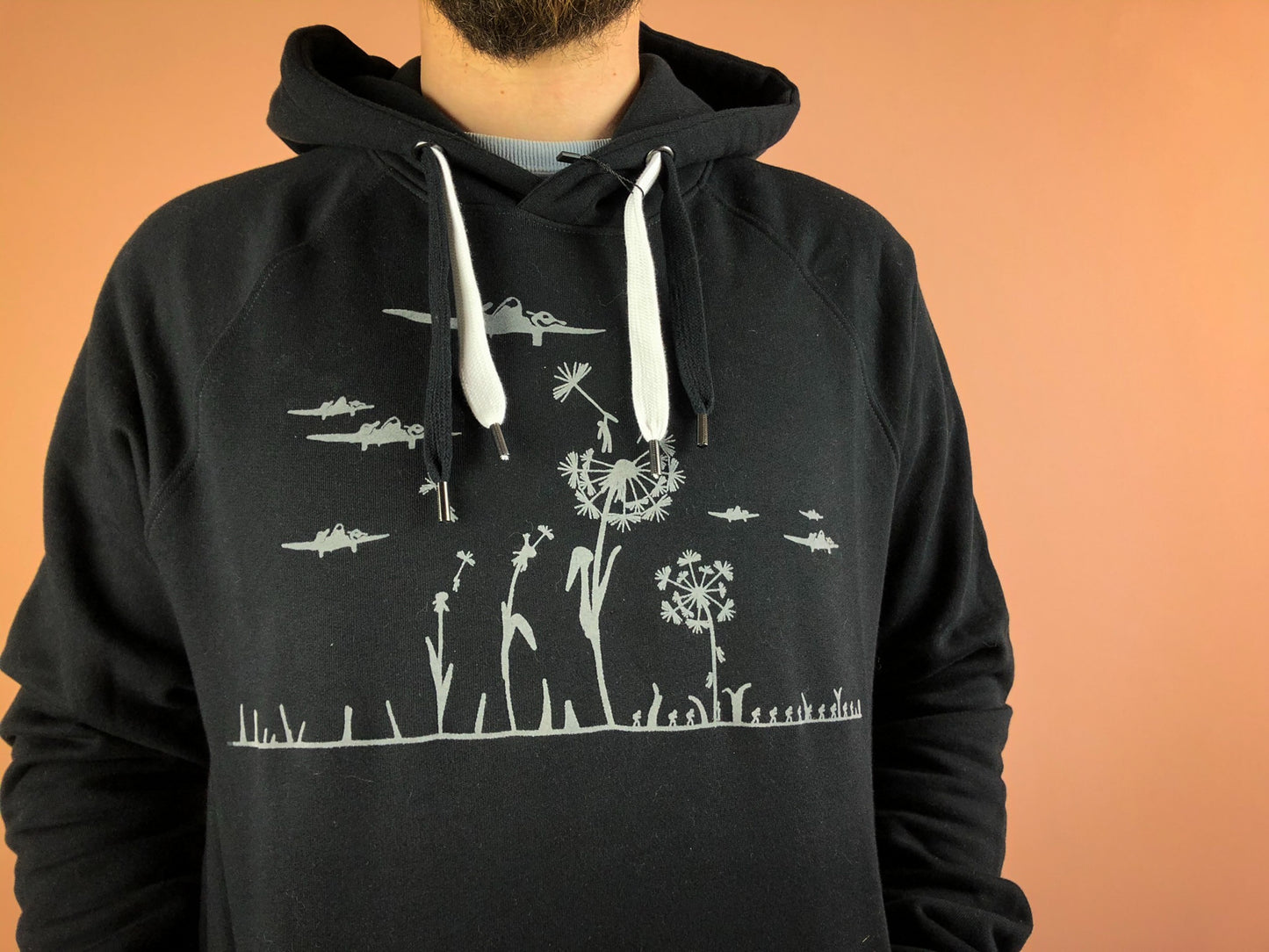 Super flauschiger Herren Hoodie mit Pusteblumen Motiv aus Biobaumwolle von naaknaak - Military Motiv in grau aus flock