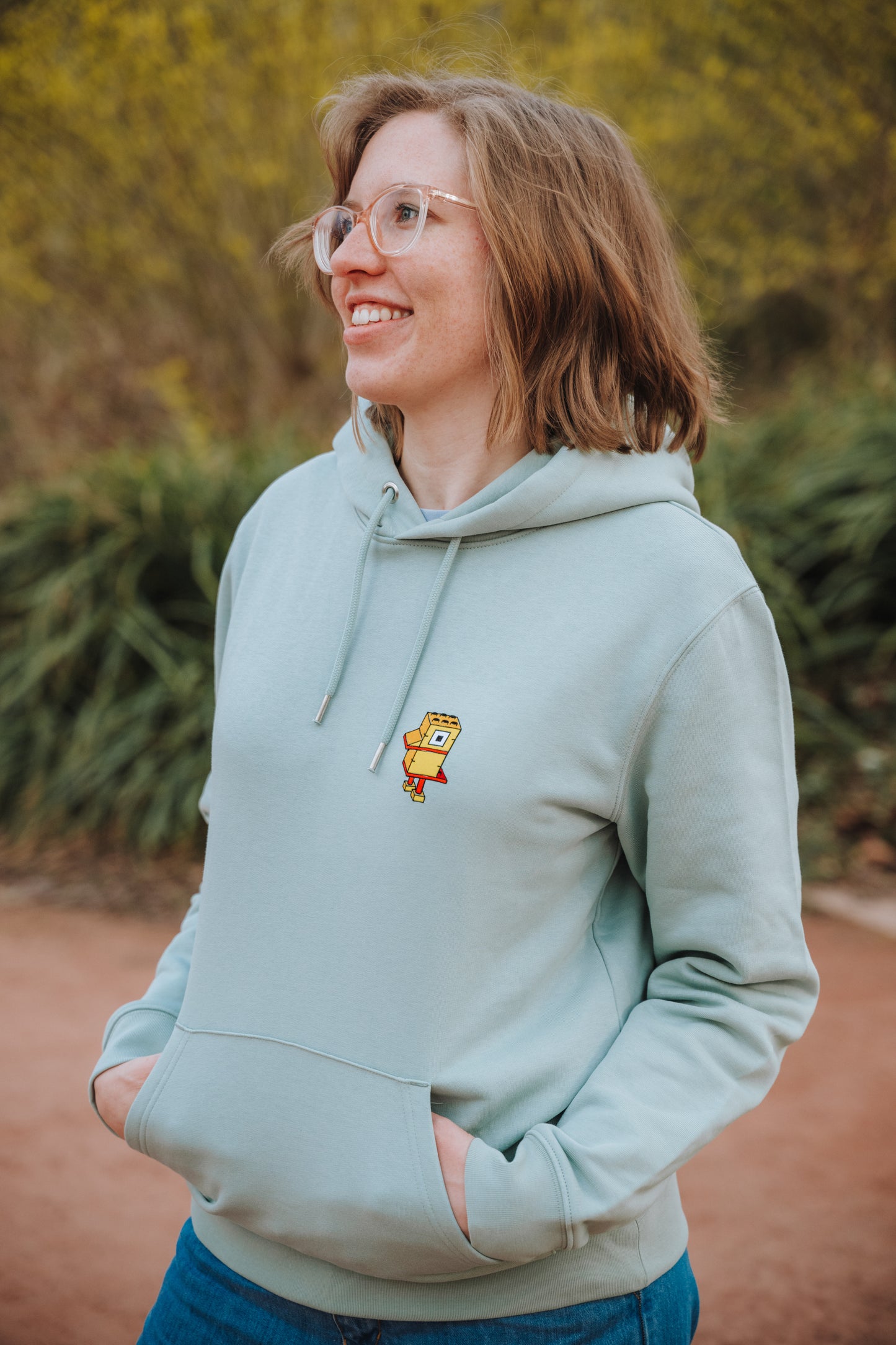 Du baust für dein Leben gern mit Klemmbausteinen, hast als Kind eine Pirateninsel gehabt. Aber etwas spezielles hat immer gefehlt: Eine Ente aus Klemmbausteinen! Du kannst sie nun haben, sie ist direkt aus Dänemark eingeflogen und auf diesen Hoodie hier gelandet. Nur ist sie nicht so hart wie Plastik, sondern aus entenflauschigen Flock.