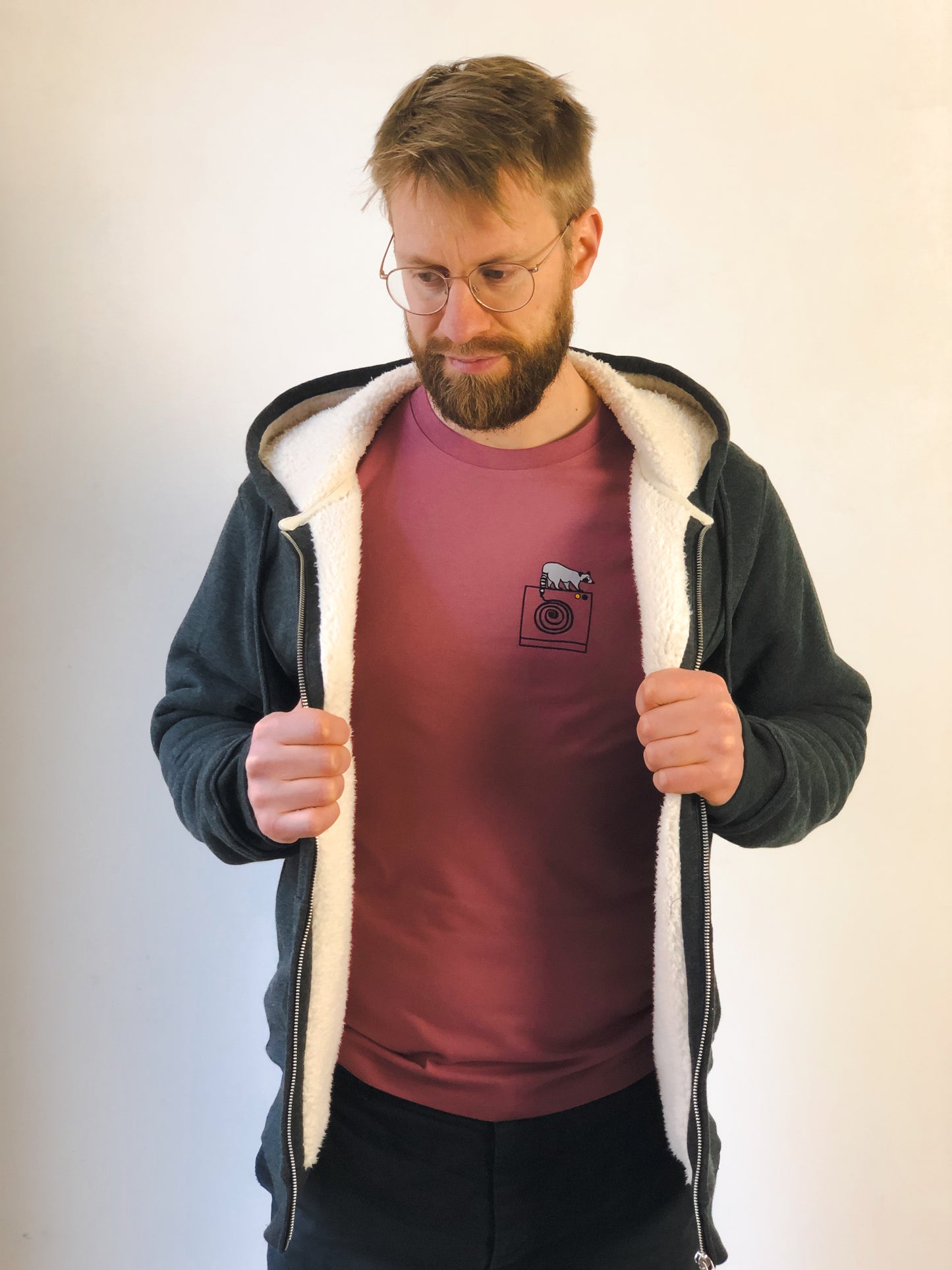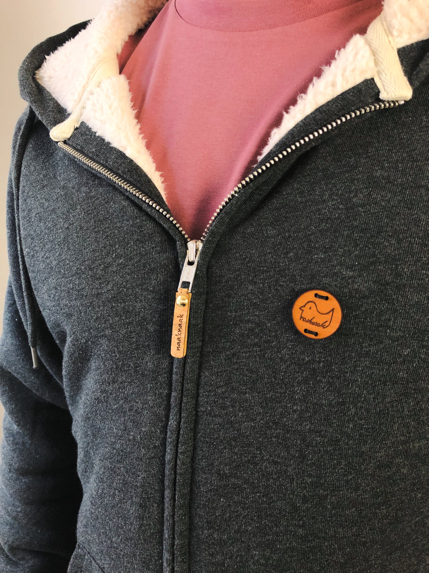 Super flauschige Sweatjacke mit Sherpa Innenfutter und gelasertem Entenknopf aus Birnenholz