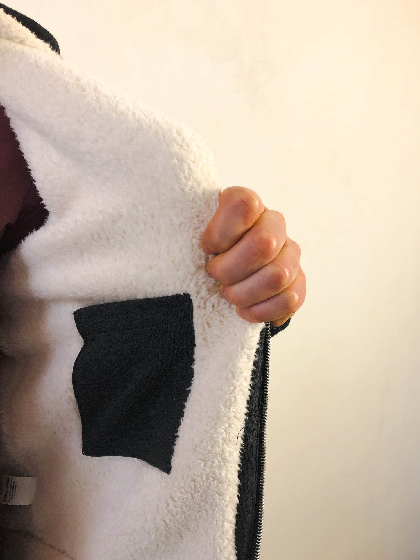 Die Sweatjacke zeichnet sich durch ihr superkuscheliges Sherpa-Innenfutter aus, sie hält dich damit an kalten Tagen und auch im Winter gut warm. Zusätzliches Plus ist auch die Innentasche, in der du ebenfalls dein Handy mitwärmen kannst ;)